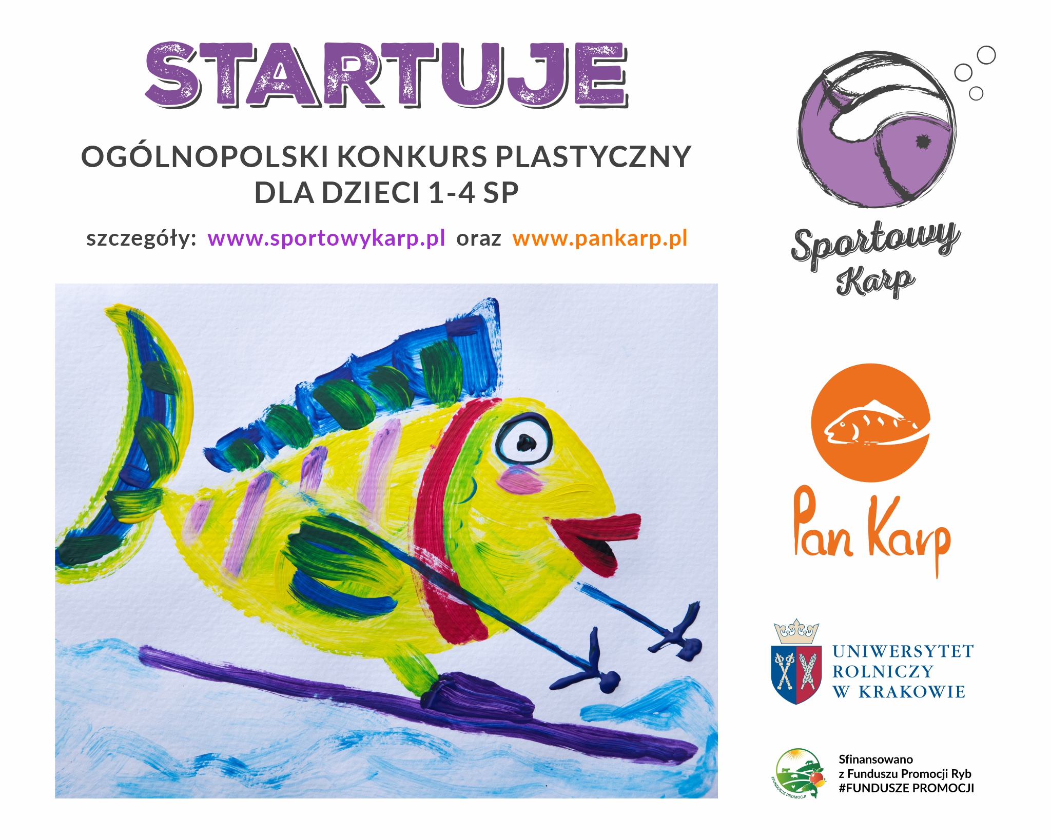Zapraszamy uczniów klas 1-4, ich nauczycieli i rodziców do udziału w trzecim już, dorocznym konkursie "Sportowy Karp". Motywem przewodnim konkursu jest promocja jedzenia karpi jako elementu zdrowego stylu życia i zwiększenia wiedzy na temat tradycyjnej hodowli karpi w naszym kraju. Zapraszamy do śledzenia przebiegu konkursu równiez na fb Sportowy Karp